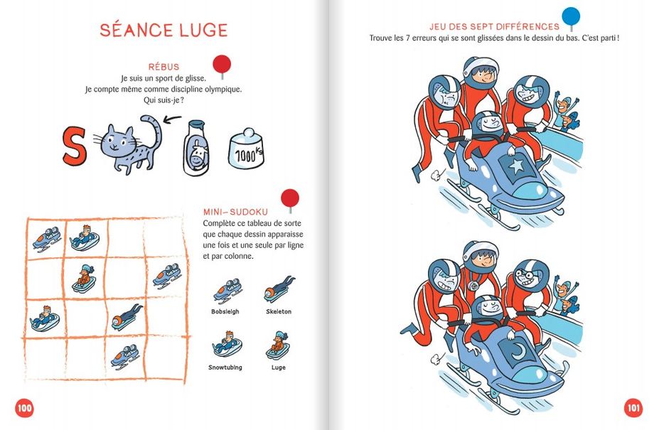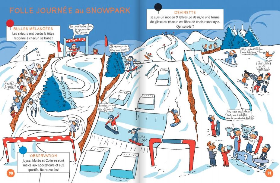 À la fin du livre, plus de trente jeux de logique et d’observation t’attendent : super quiz, labyrinthe, bulles mélangées, sudoku, jeux des sept différences, etc. Explore ces pages et tu deviendras incollable en ski !