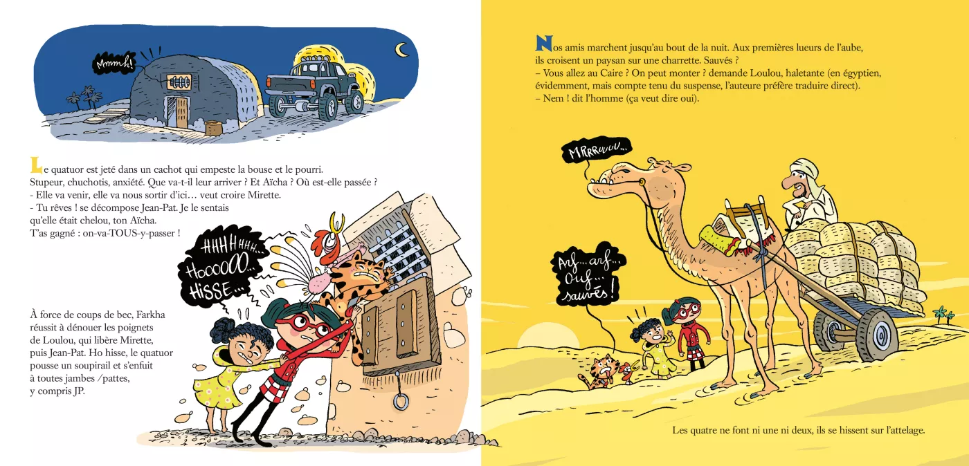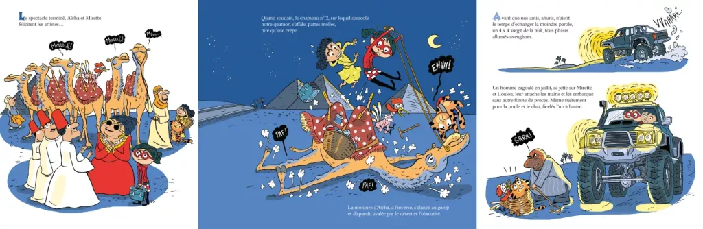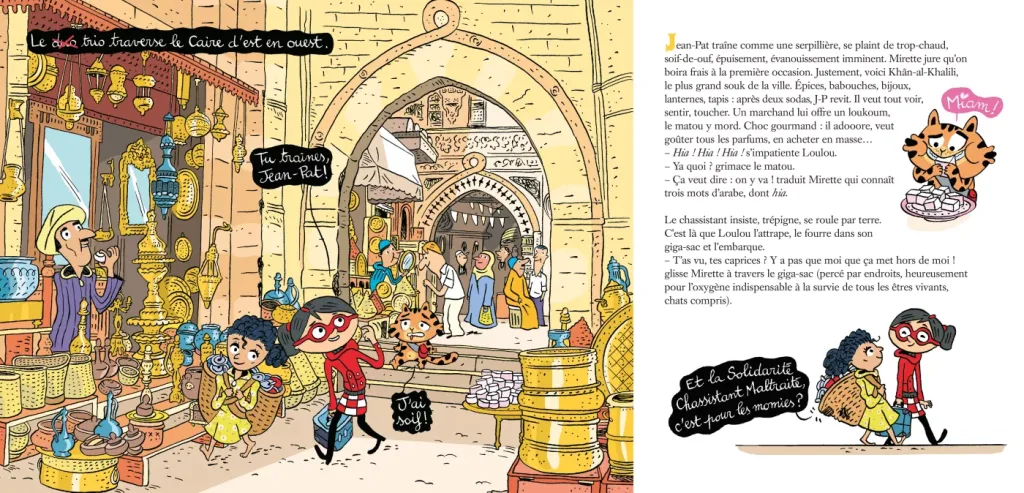 Cette fois, Mirette va rencontrer une fillette des rues fort débrouillarde, Loulou, qui va l’aider à dénouer les fils d’un nouveau mystère : on a volé les bijoux d’Aïcha, chanteuse inspirée de la grande Oum Kalsoum !